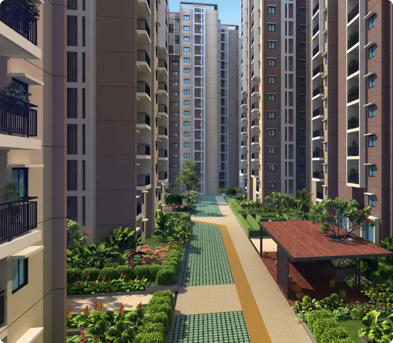 As you enter Vasavi Nandanam, you’re greeted by a vibrant landscape of trees, bushes, and colourful flowers, creating a serene atmosphere that immediately sets it apart. Architecture of the 2 & 3 BHK apartments harmonises with the environment, with large windows that offer panoramic views of the verdant landscape. Winding pathways lined with greenery guide you through the community, providing a calming stroll and a connection to nature. Vasavi Nandanam is carefully designed to blend seamlessly with the natural surroundings, offering a refreshing escape from the hustle-bustle of the city. Whether taking an evening stroll, enjoying a morning jog, or simply relishing the view from your balcony, living in Vasavi Nandanam is truly rejuvenating.